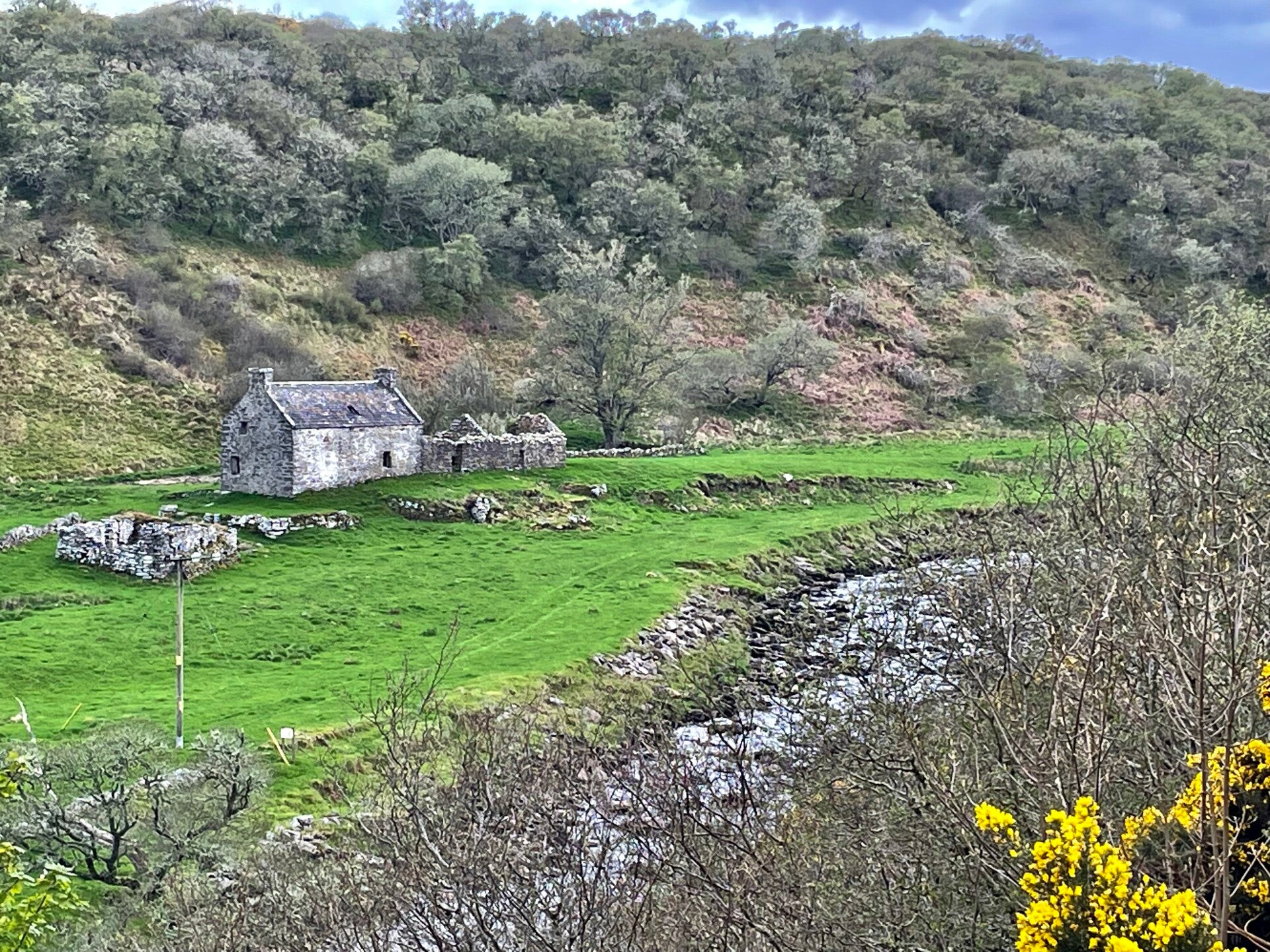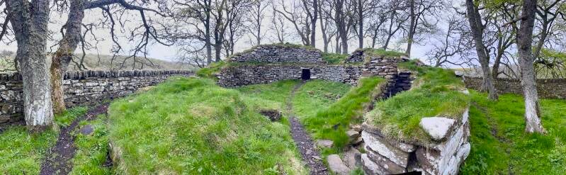 Der Camping ist winzig, aber für uns gut, hier können wir endlich unser Fleisch grillieren, ohne dass es mich davon windet, und auch einige archäologische Objekte gibt es in der Nähe zu bewundern, sogenannte Brochs (Wohntürme). Der Abend beschert uns einen super Sonnenuntergang.