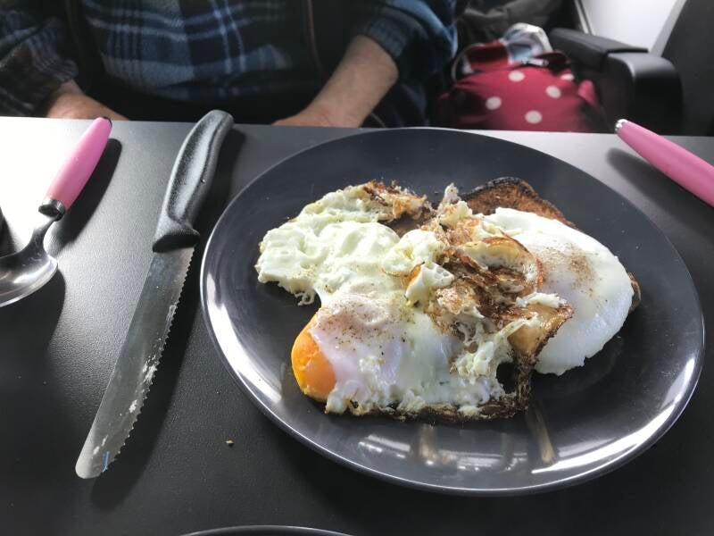 Toast und Spiegeleier, und Besuch ...................................der Produzentinnen.