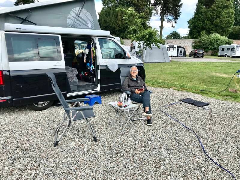 Wir fahren von Stirling ein kurzes Stück zurück nach Osten; nur 20 Minuten von Sterling entfernt hat es ein schönes Schloss und einen schön gelegenen Campingplatz in einem walled Garden.