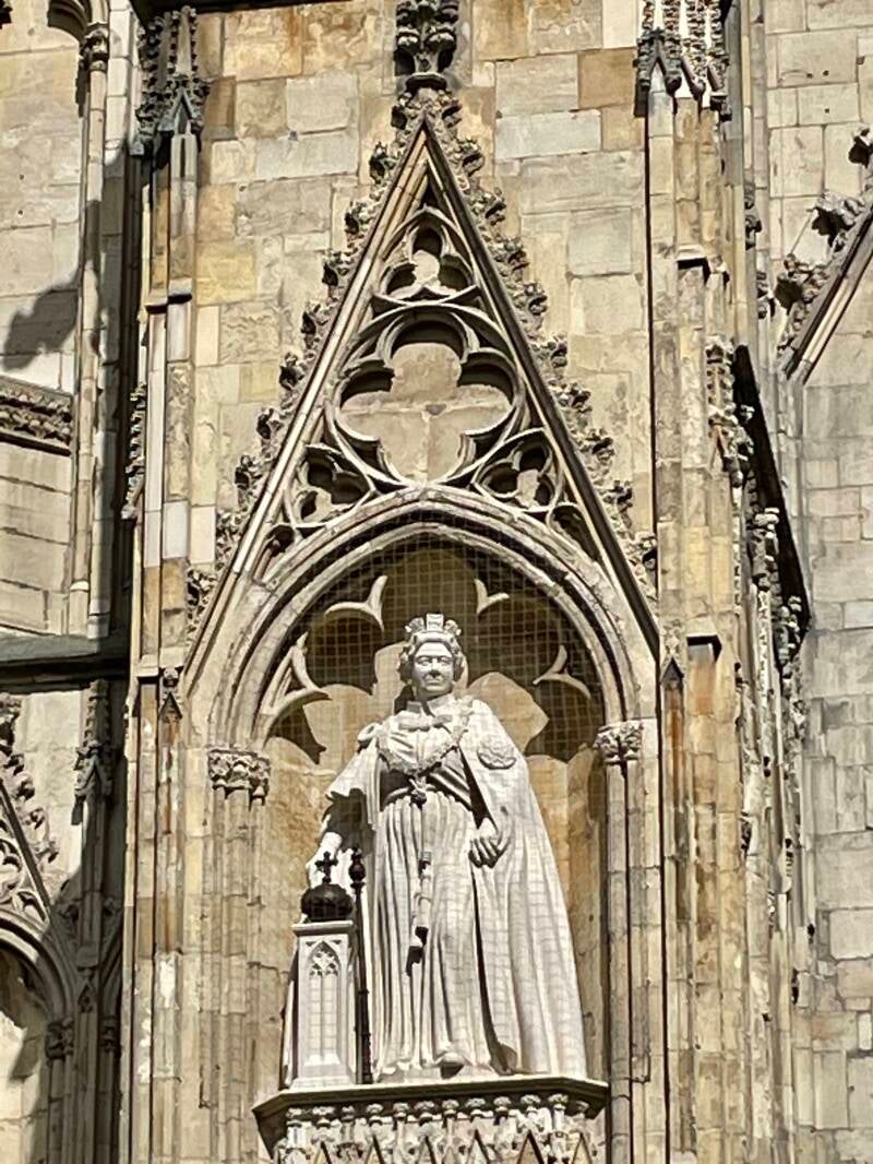 Im April wurde eine weitere Statue am Haupteingang angebracht. Es ist das Bildnis der Queen. Eigentlich war im letzten Jahr im September geplant, die Statue zu errichten, aber wie wir alle wissen starb Elisabeth die ll. Im September. So hat man bis im April gewartet und König Charls hat die Statue dann feierlich ernthüllt.
