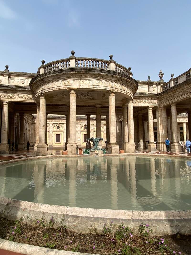 Früher waren die Quellen sehr gefragt und die gehobene Gesellschaft suchte Linderung ihrer Leiden in Montecatini. Davon zeugen viele Bodenplatten mit den Namen berühmten Besuchern.
