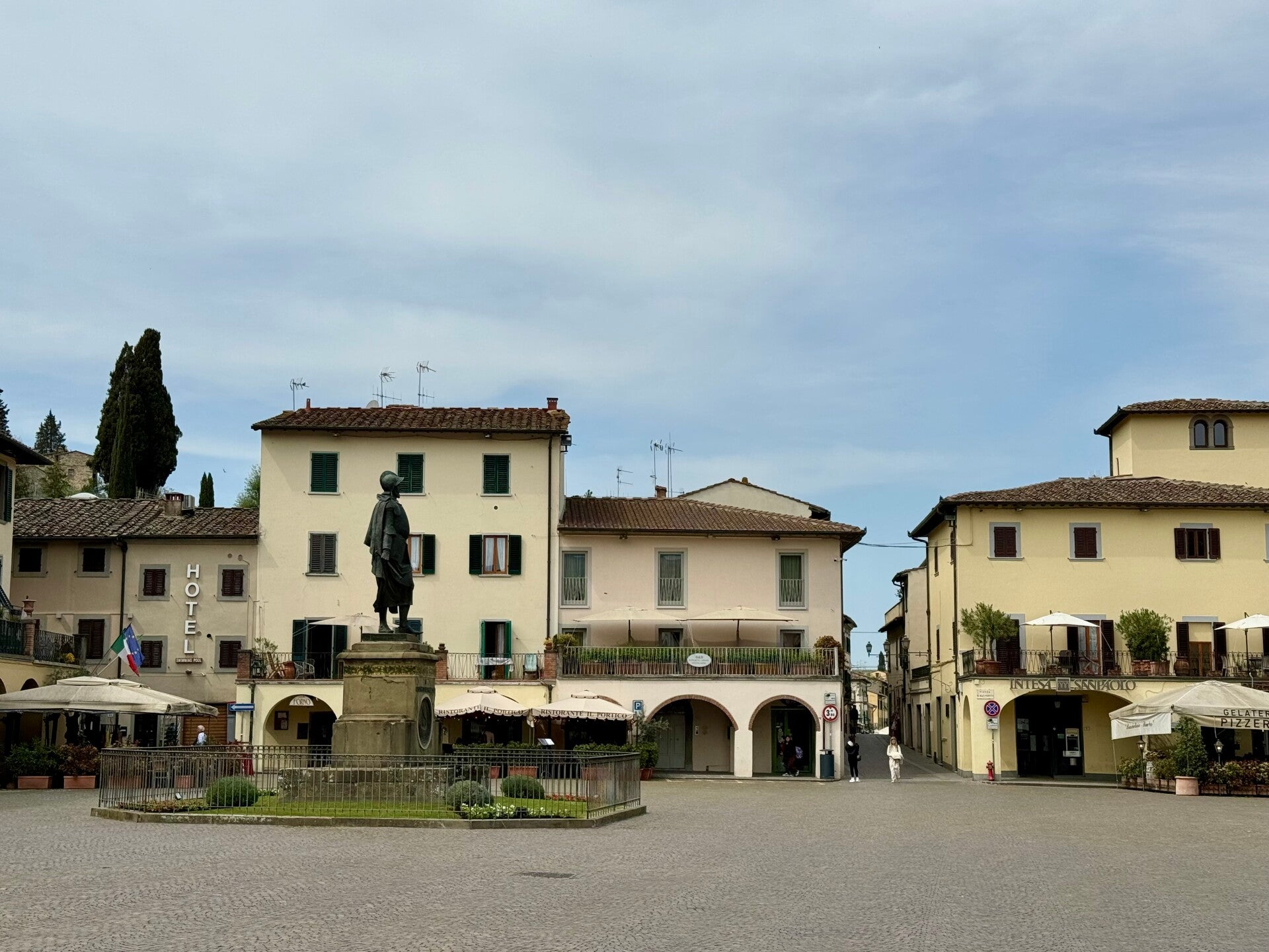 Durch extrem enge Gassen fahren wir wieder Richtung Florenz hinunter. Teilweise muss ich aussteigen und lotsen, damit wir mit unserem Bus durchkommen. Einmal müssen wir umdrehen, da wir nicht weiter kommen. Froh endlich unten angekommen zu sein, fahren wir ins Chianti Gebiet. Wunderbar durch schön grüne Hügel fahren wir nach Greve in Chianti.