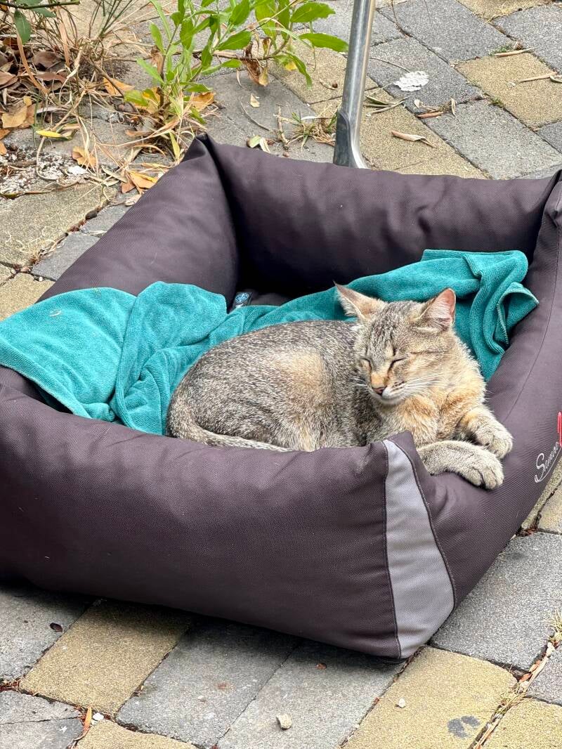 Es hat hier auf dem Stellplatz einige Katzen, eine hat Fionas Kistchen gleich in Beschlag genommen!