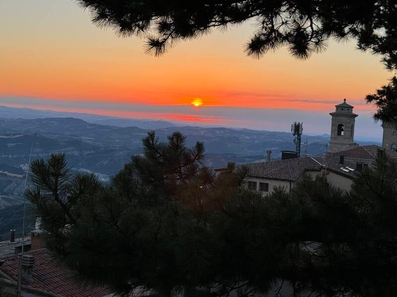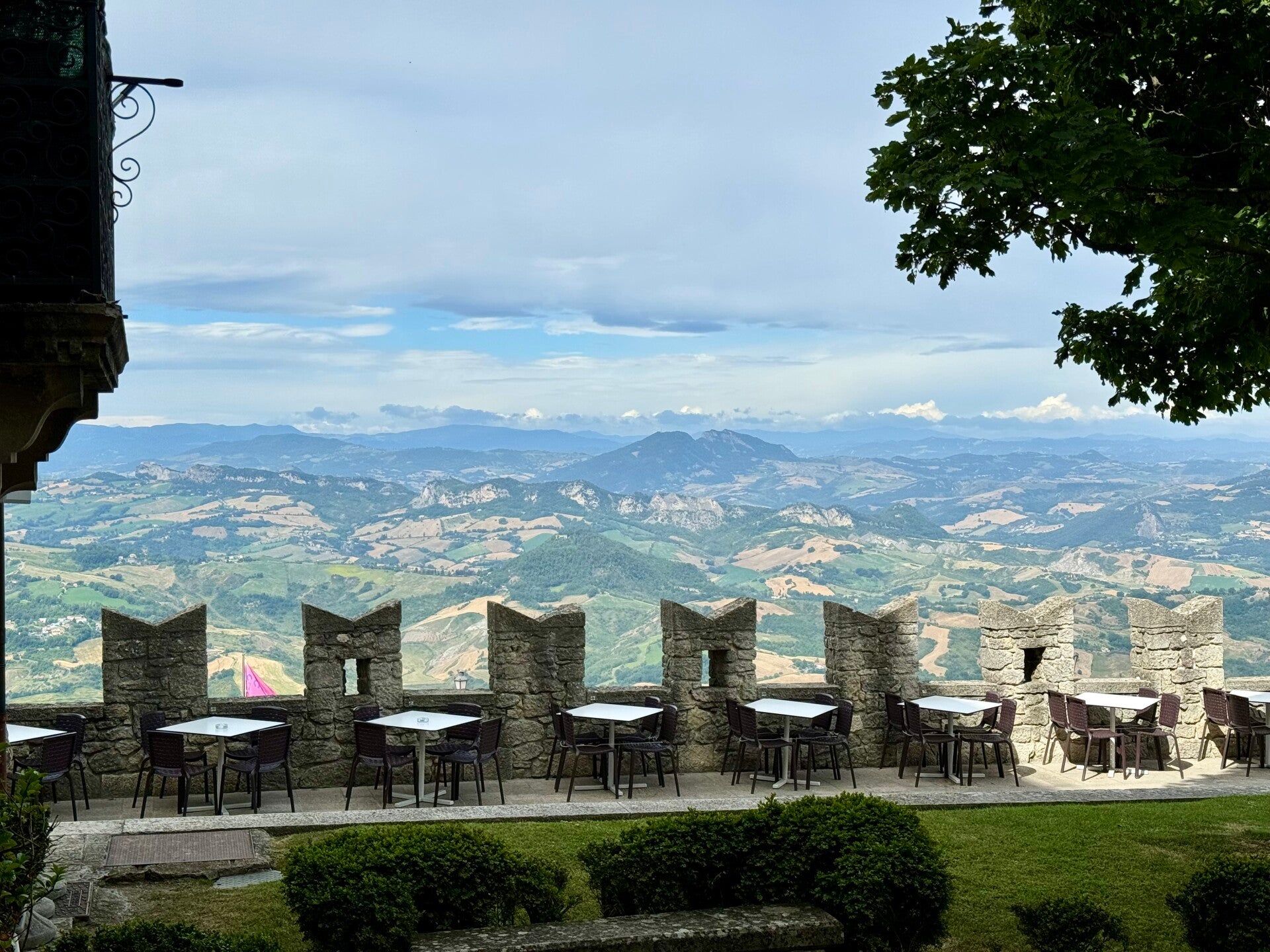 Die Republik San Marino ist die vermutlich älteste bestehende Republik der Welt mit einer Geschichte, die der Überlieferung nach bis auf das Jahr 301 mit der Gründung durch den heiligen Marinus zurückgeht. Sie ist als Enklave vollständig von Italien umgeben. San Marino ist einer der sechs europäischen Zwergstaaten und sowohl mit einer Bevölkerung von rund 30.000 Einwohnern als auch mit einer Fläche von rund 60 km² der jeweils fünftkleinste international anerkannte Staat der Welt.Mitten in der Alstadt haben wir ein nettes kleines Hotel mit grandiosem Blick in die Ebene.
