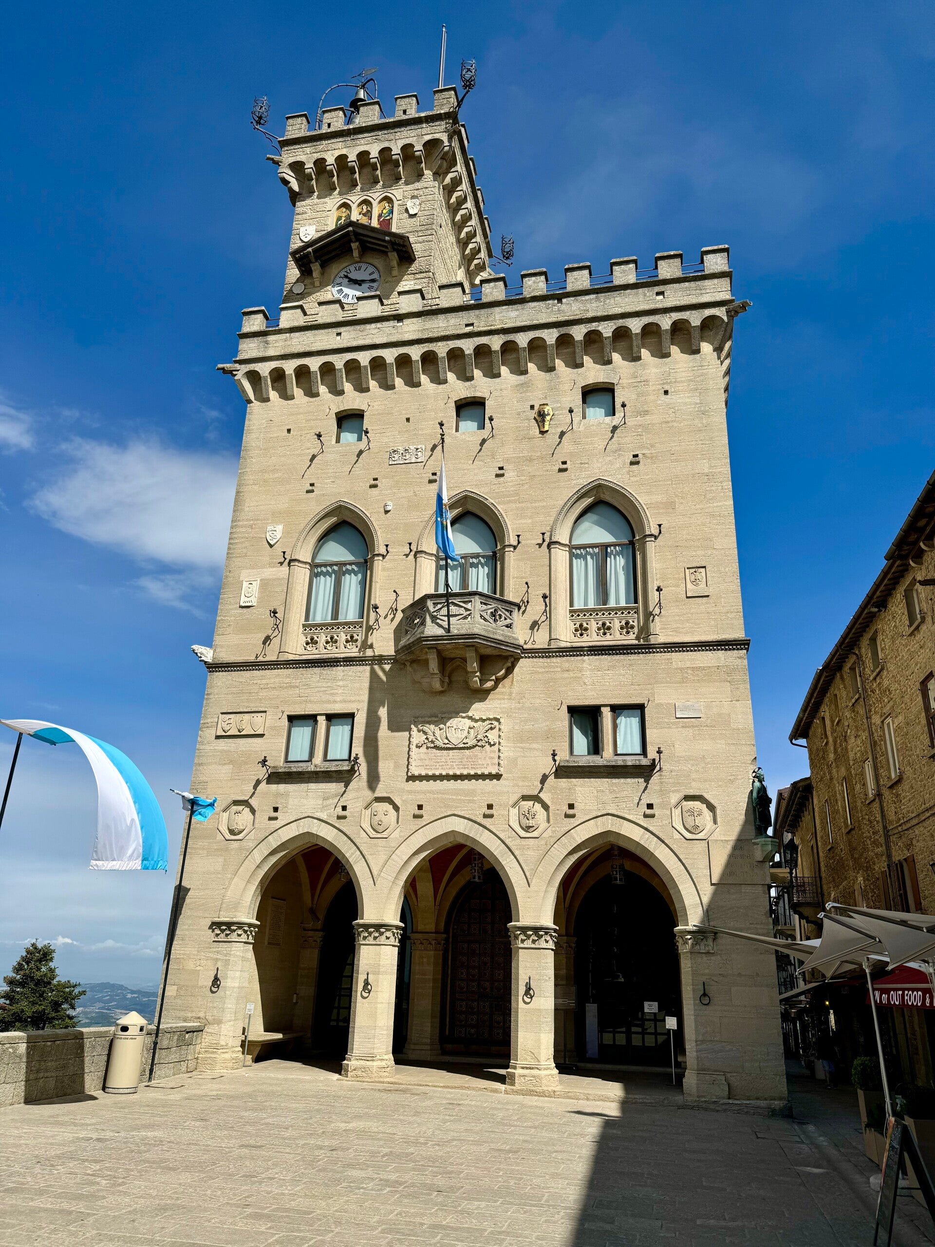 San Marino liegt ganz oben auf einem Hügel, Mittelalterliche Türme umranken die Altstadt. Wir schauen uns die Stadt an, die sehr touristisch, aber schön ist. Es gibt viele Läden, speziell auch Parfüm Läden, da hier zollfrei eingekauft werden kann.